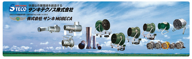 サンキテクノス(株)は、1968年の創業以来、『生産現場・工事現場の作業環境・安全環境改善、冷却に関わる送排風機器やシステムの開発を通じて社会に役立とう』との理念のもと、現在では移動式換気装置の代名詞になっている『ポータブルファン』、大風量・遠距離高風速送風機『ジャンボファン』を日本で初めて開発・商品化、国内工場にて製造し、販売を致しております。また、(株)サンキMOBECAでは、電気を使用しないエジェクター式送排風機『フリエックス』を同じく国内製造、販売させて頂いております。今後も、『オリジナル商品』と『品質』にこだわったものづくり、ご提案を続け、お客様の役に立ち、信頼を得られる企業でありたいと思っています。